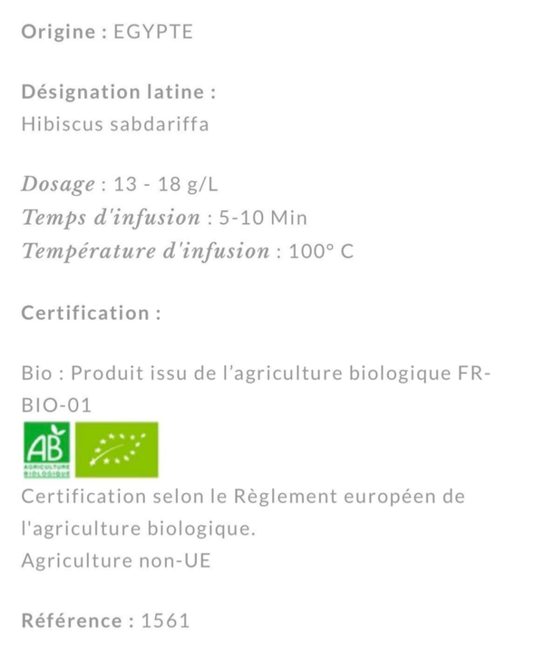Ingrédients : hibiscus bio , plantes naturelles bio