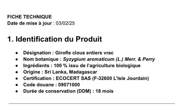 À conserver 1 à 2 ans dans un endroit sec, à l’abri de la lumière et de l’humidité. Bien refermer après ouverture.